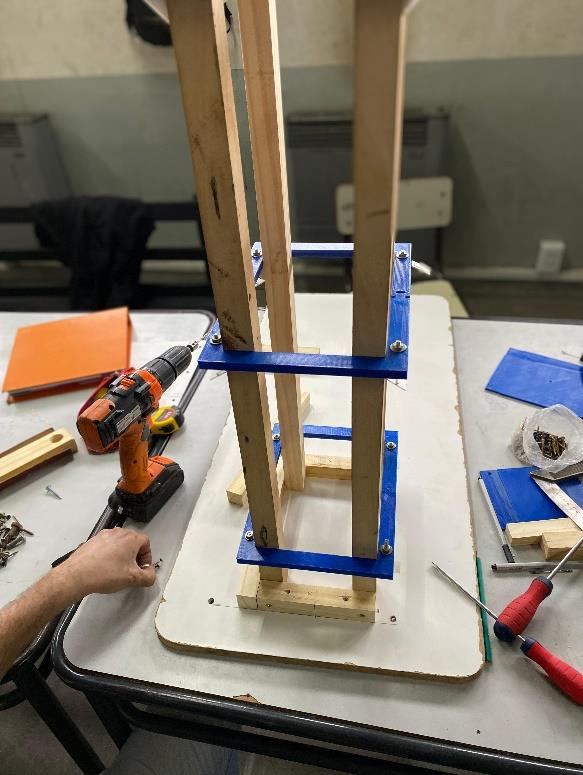 Una vez que está plasmado el diseño, se fabrican las piezas necesarias en una impresora 3D: la plataforma donde va la carga, la estructura de madera que lo sostiene, los rieles por donde sube y baja, y los mecanismos que lo hacen funcionar. Todo debe estar hecho con materiales resistentes y seguros.